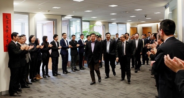 217日,中化集团宁高宁董事长莅临中化国际位于金茂大厦总部视察工作,并向员工们送去新春的祝福。中化集团总裁助理、中化国际董事长张增根等陪同视察。这是宁总履新后首次视察中化集团下属企业,中化国际总经理覃衡德及领导班子成员热情接待了宁总一行。